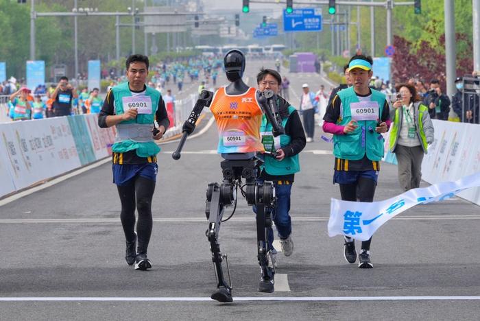 For most of the time during the race, the robot’s turning and pace were following me. But at the starting point and the finishing point, it was still controlled by the engineer. When there were still one or two hundred meters to the final finish line, the robot was taken over by the engineer. We had to ensure that the robot crossed the finish line first, and we followed behind.