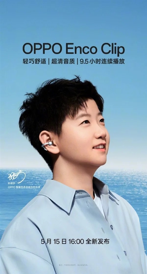 OPPO Enco Clip ear clip headphones have limited production capacity and will be available in limited quantities, priced at 799 yuan, and they are the same model as those used by Sun Yingsha.