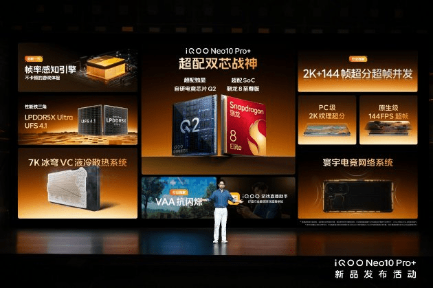 Yesterday, the “Super-equipped Dual-Core God of War” iQOO Neo10 Pro+ was officially released. With a 2K Q10 Zhufeng screen leading in the same price range and the dual-core combination of Snapdragon 8 Extreme Edition, it comes with seven “super-equipped” features, bringing an even better super-resolution and super-frame-rate gaming ecosystem in the industry. It can be regarded as a “more powerful gaming performance flagship”. The iQOO Pad5 series, iQOO WATCH 5, iQOO Magnetic Cooling Back Clip Pro, iQOOTWS Air3, and iQOO 33W Built-in Cable Power Bank also made their debuts, forming an excellent e-sports ecosystem with the new phone to enhance users’ mobile gaming experience.