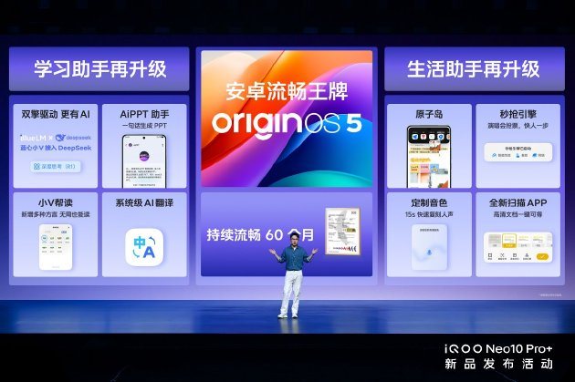 The Neo10 Pro+ is equipped with the well-received OriginOS 5. The “AI King” Blue Core large model and DeepSeek drive together. The new Seconds Grab Engine turns the phone into a ticket grabbing artifact for young people, significantly improving the ticket grabbing speed.