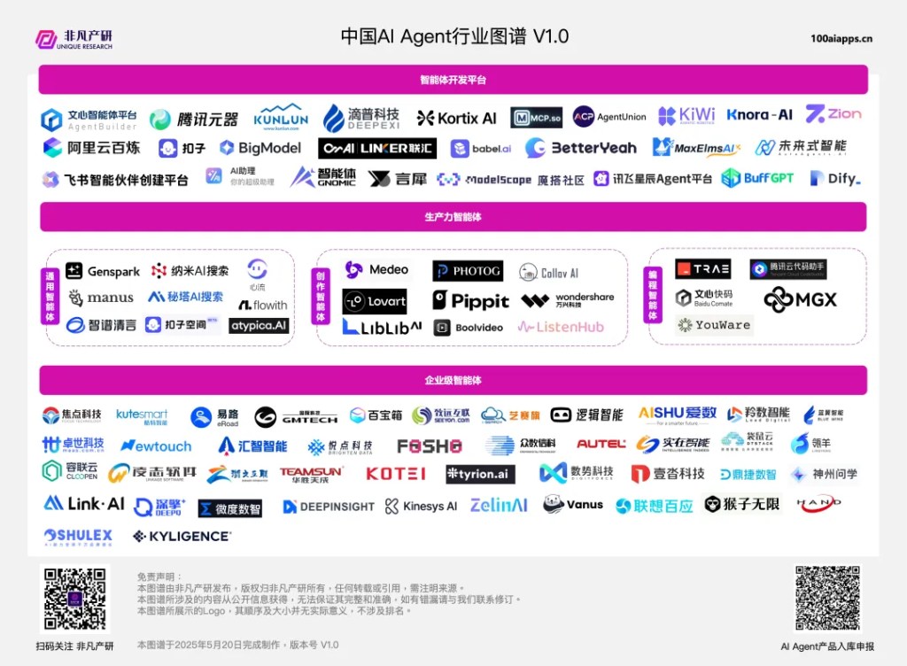 Please note: The arrangement of logos in the map is only for layout design considerations and does not represent any ranking or market share; the AI Agent field is evolving rapidly, and we will continue to update the version. We welcome all new players to “report in”!